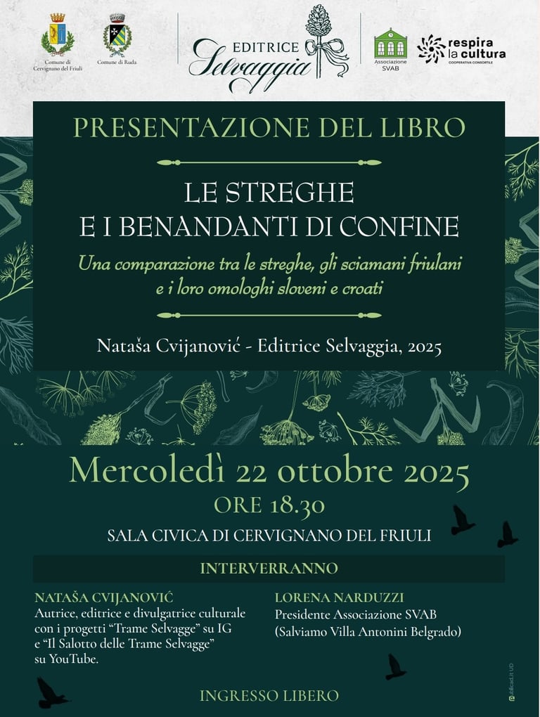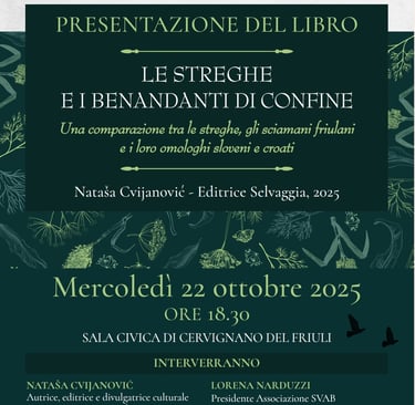 Presentazione del saggio "Le streghe e i benandanti di confine" (Editrice Selvaggia, 2025) a Cervignano del Friuli - mercoledì 22 ottobre 2025
