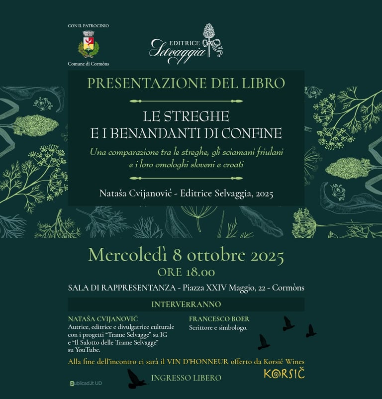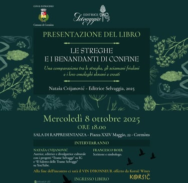 Presentazione del saggio "Le streghe e i benandanti di confine" (Editrice Selvaggia, 2025) a Cormons - mercoledì 8 ottobre 2025