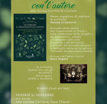 Presentazione del saggio "Le streghe e i benandanti di confine" (Editrice Selvaggia, 2025) alla Vecchia Corriera di Loc. Cocevaro, nelle Valli del Natisone - venerdì 21 novembre 2025
